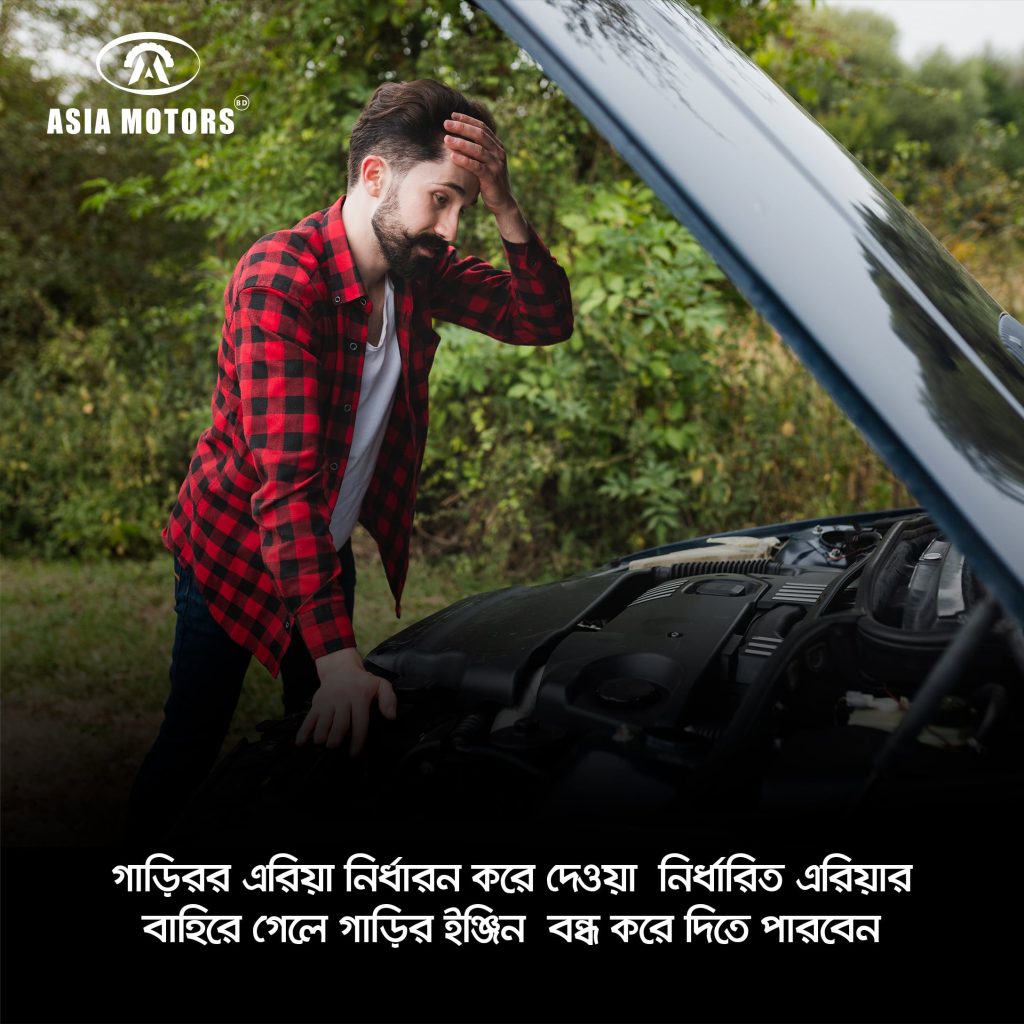 ৭। গাড়ীর এরিয়া নির্ধারণ- গাড়ি নির্ধারিত এরিয়ার বাহিরে গেলে গাড়ির ইঞ্জিন স্বয়ংক্রিয়ভাবে বন্ধ হয়ে যাবে।